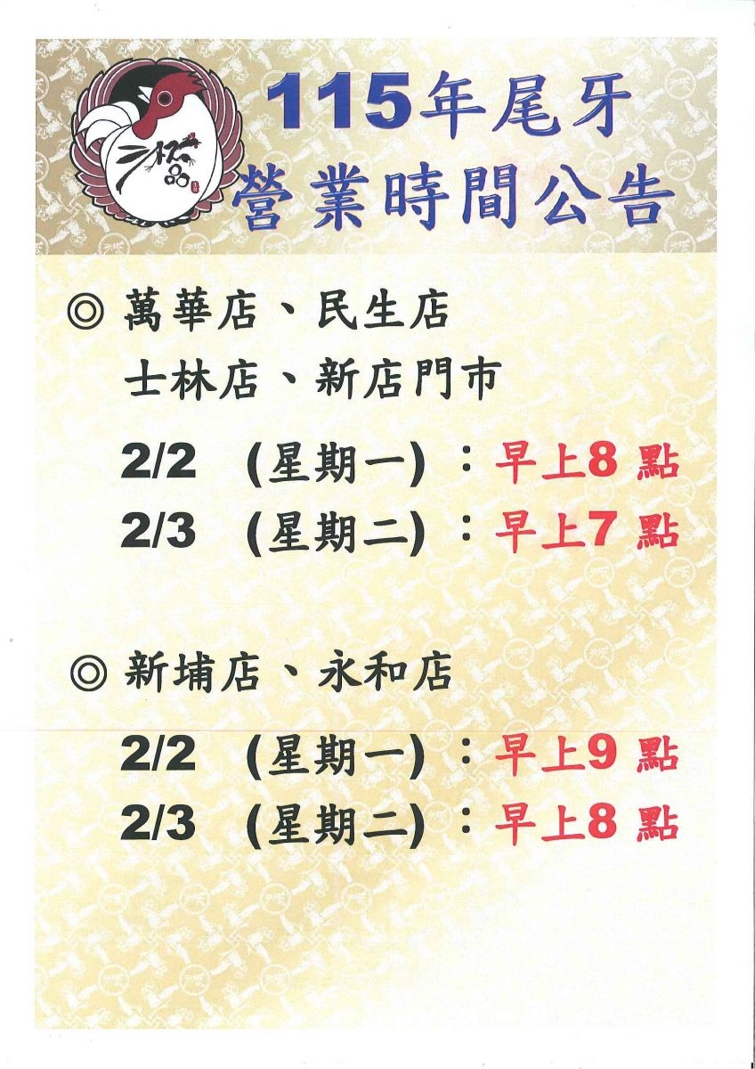 115年尾牙營業時間