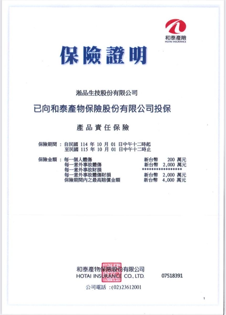 [本公司產品已投保產品責任險 ]