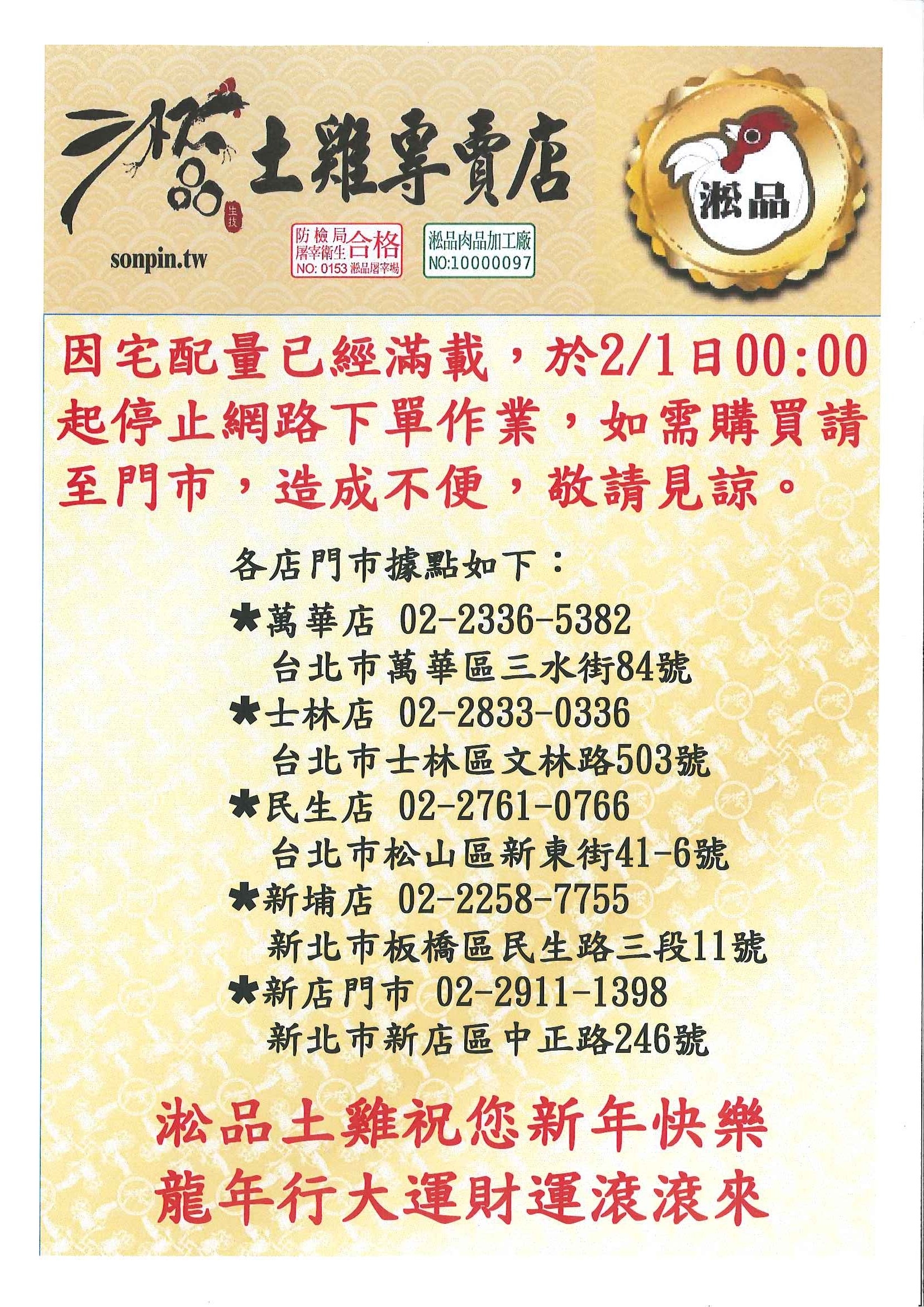過年期間暫停宅配