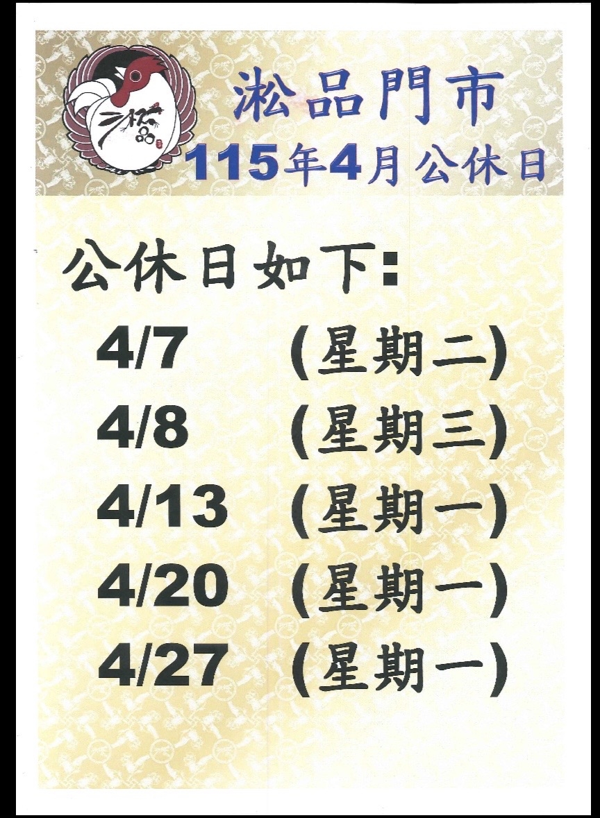 115年4月公休日公告